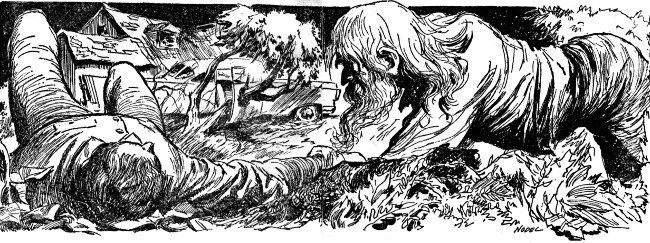 I reached for the pistol, found only leaves, tried again, touched the gun and knocked it away. I was still groping when I heard a scuffle of feet. I swung around, saw a tall, wide figure with a mane of untrimmed hair.