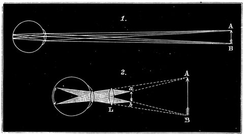 | 35. | Diagram showing path of rays when viewing an object at an easy distance | 70 |