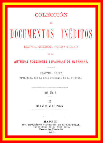 Aclara mucho y completa las noticias geográficas, así como las costumbres, ceremonias religiosas, armas, mantenimientos, trajes y contratos, la Relación atribuída á Juan de la Isla, que se inserta bajo el número 40, pág. 226; y da mucha luz sobre el manejo de los portugueses para impedir la colonización española en las Filipinas, la información del número 43, pág. 284. Por ello hay que acoger con prevención algunas relaciones anónimas sobre el comportamiento de los españoles con los indios en los primeros años de la conquista: algunas han servido para fundar falsas ó por lo menos inexactas historias que corren impresas en idioma portugués; otras fueron escritas en castellano por autores portugueses, y alguna existe aún inédita, bastando su cotejo con las que ahora salen á luz para persuadir de su origen y tendencias. Tal es una que tenemos á la vista y no ha cabido en el presente tomo.