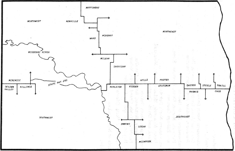 NORTH DAKOTA (Quarters are shown bounded by County Lines, Highways, or Rivers)