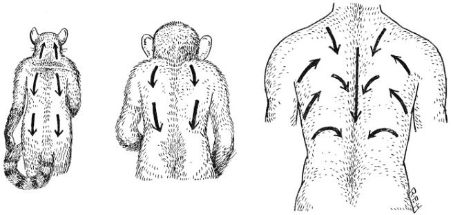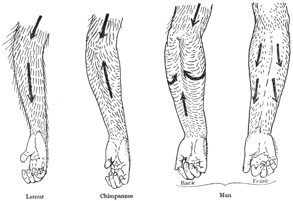 | 41 | Arrangement of hair on back of lemur, chimpanzee and man | 105 |