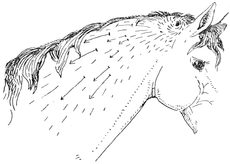 | 50 | Side view of domestic horse, showing reversed hair due to harness | 129 |