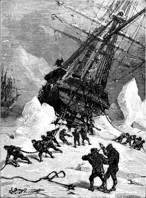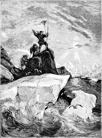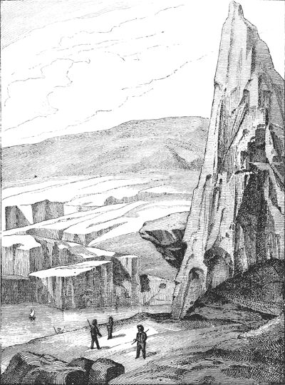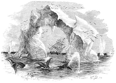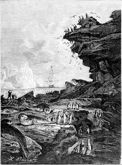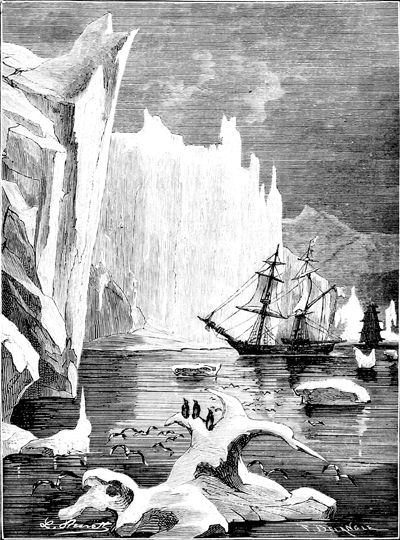 Vue de la Terre Adélie.—D'après Dumont d'Urville. Voyage au pôle sud et dans l'Océanie pendant les années 1837 à 1840....—Paris, Gide, 1841-1854, 23 vol. in-8 et 6 atlas in-fol. (Histoire du voyage, tome III.)