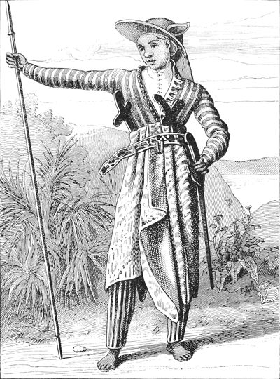 Guerrier Javanais.—D'après Raffles. The history of Java....—London, Black, 1817. 2 vol. in-4.