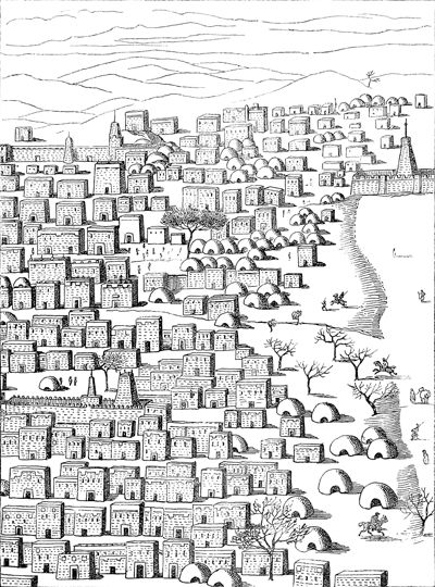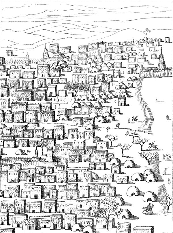 Vue d'une partie de Tembouctou.—D'après Caillié. Journal d'un voyage à Tembouctou....—Paris, 1830, 3 vol. in-8 et atlas in-fol.