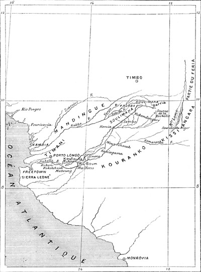Carte du voyage de Laing.—D'après le major Laing. Travels through the Timanee.—London, 1835, in-8.