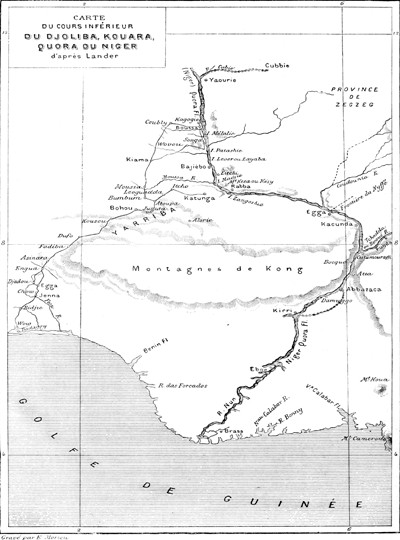 Carte du cours inférieur du Niger.—D'après Lander. Op. cit.