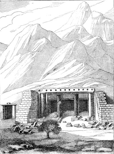 Vue du Temple principal de Sekkeh.—D'après Cailliaud. Voyage à l'Oasis de Siouah.—Paris, de Bure, 1823, in-fol.