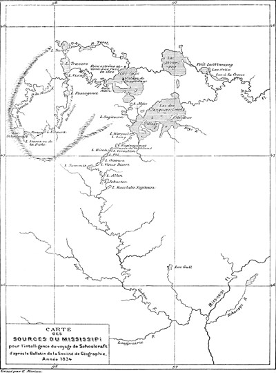 Carte des sources du Mississipi.—D'après le Bulletin de la Société de géographie, 1844.