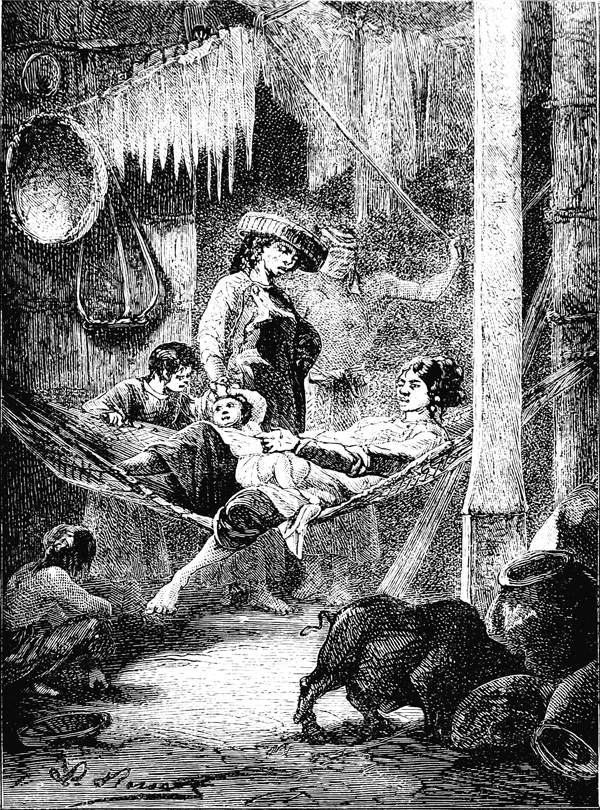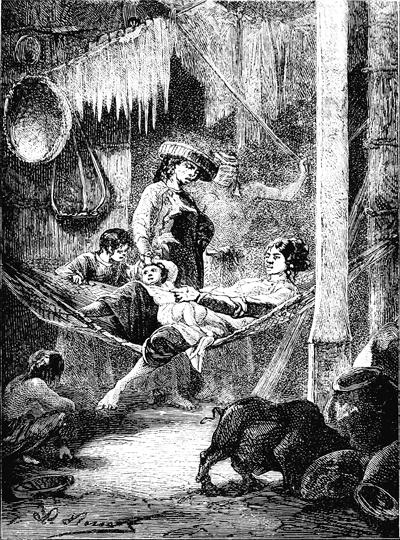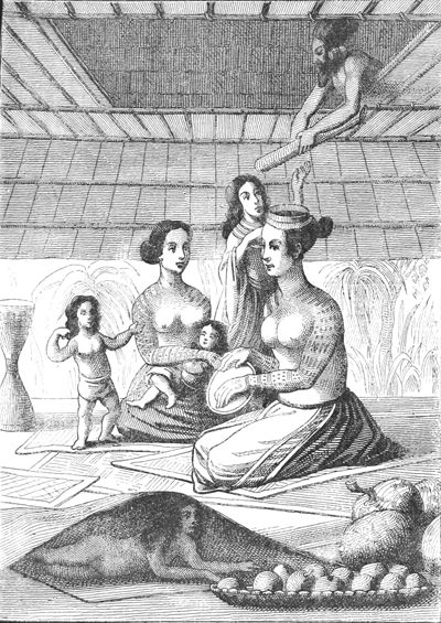 Intérieur d'une maison à Radak.—D'après Kotzebue. Entdeckung's Reise.... Voyage de découvertes dans la mer du Sud.—Weimar, 1821, 2 vol. in-4.