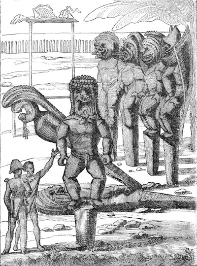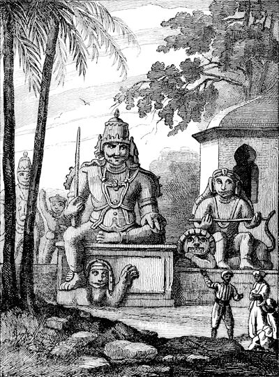 Idoles indiennes près de Pondichéry.—D'après de La Touanne. Album pittoresque du voyage de la Thétis. In-fol.