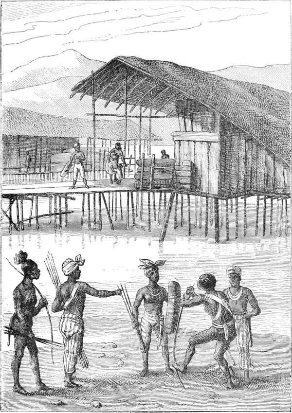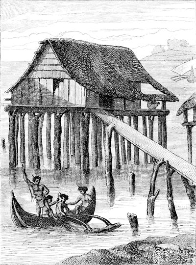 Village de Doreï.—D'après Dumont d'Urville. Voyage de la corvette l'Astrolabe.—Paris, Tastu, 1830 et années suivantes, 3 vol. in-8 et atlas in-fol.