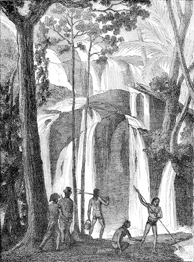 Cascade du port Praslin.—D'après Duperrey. Op. cit. Pl. 21.