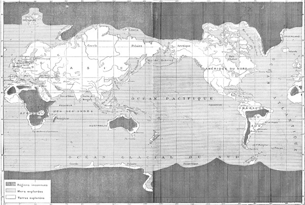 Le savant géographe Malte-Brun, dans un article qu'il publia, en 1817, en tête des Nouvelles Annales des Voyages, marque, minutieusement et avec une extrême précision, l'état de nos connaissances géographiques au commencement du XIXe siècle et les nombreux «desiderata» de la science. Il fait ressortir les progrès déjà accomplis de la navigation, de l'astronomie, de la linguistique. Bien loin de cacher ses découvertes, comme l'avait fait par jalousie la Compagnie de la baie d'Hudson, la Compagnie des Indes fonde des académies, publie des mémoires, encourage les voyageurs. La guerre elle-même est utilisée, et l'armée française recueille en Égypte les matériaux d'un immense ouvrage. On va bientôt le voir, une noble émulation s'est emparée de tous les peuples.