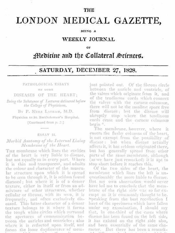 Of the two sides of the heart, the membrane which lines the left is unquestionably the more liable to disease. But my own observation would never have led me to conclude that the membrane of the right side was so far exempt as it is commonly thought to be. Speaking from the best recollection I have of the specimens which have fallen under my examination, I should say that, in one-third of the cases where disease has been found on the left side, it has existed on the right side also, and been essentially of the same character. But there has been a remarkable difference in the extent to which it has proceeded on each side respectively: while on the left it has gone so far as to be the undoubted cause of death, on the right, although essentially of the same character, it has been only just beginning.