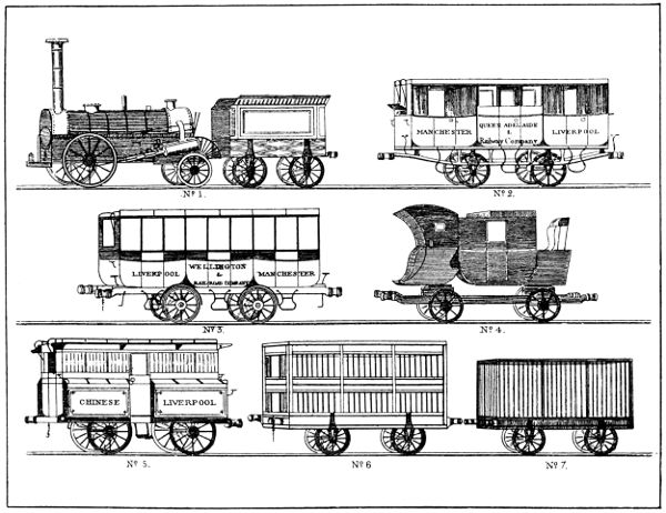 1. Georg Stephensons Preislokomotive „Rakete“,