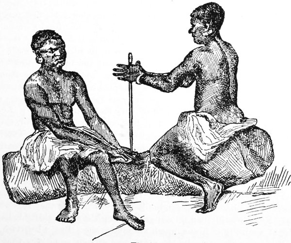Many travelers relate that they have seen various peoples make fire with sticks of wood. The most common way, by twirling one stick upon another is well described by Pere Lafitau with reference to the Hurons and Iroquois.