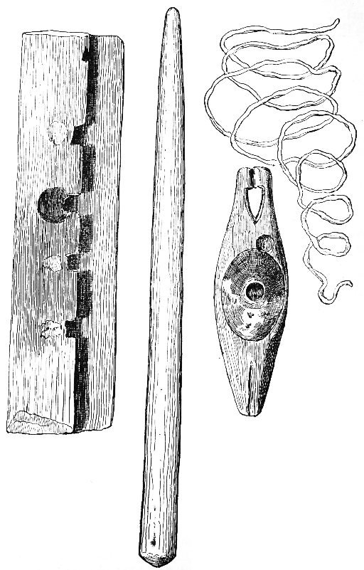 It is not improbable that the Iroquois—the most advanced Indians in some respects on the continent, invented this use of the widely diffused pump-drill. It scarcely seems to be a practical way to make fire, 547 and, despite the assurances and belief of the Iroquois, is not very ancient, but was perhaps suggested by the white man. Indeed, Pere Lafitau, that keen and careful observer, in his “Moeurs des Sauvages Ameriquains,” written in 1724, on page 242, gives a description of Indian fire-making that includes the Iroquois. He says:
