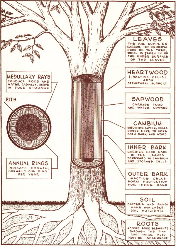 DIAGRAM SHOWING FUNCTIONS OF DIFFERENT PARTS OF A TREE