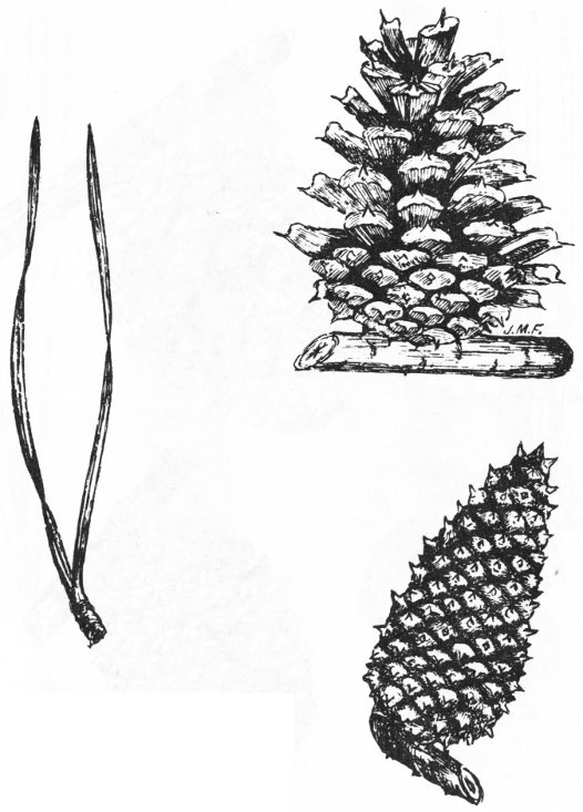 General: Smooth, thin, reddish brown, scaly bark. A small tree; able to grow on poor, dry soils. Common on abandoned farm lands where shale soils predominate. Usually grows in dense pure stands. Often called scrub pine. Wood used chiefly for paper pulp, fuel and mine props.