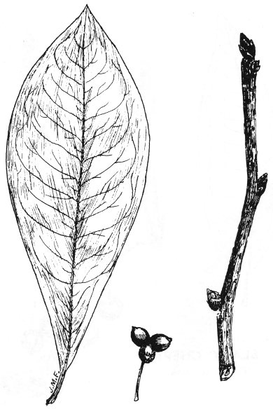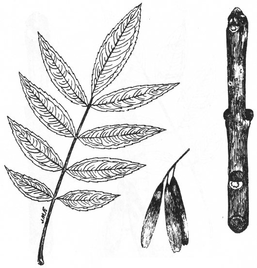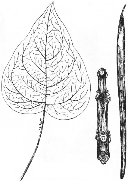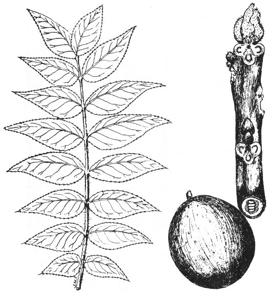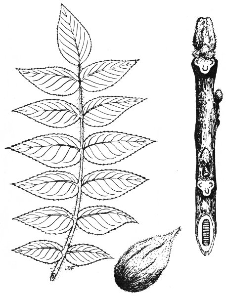 Twigs: Stout, ridged, yellow-brown to red-brown. Buds egg-shaped, about ½″ long, brown at first and later silvery.