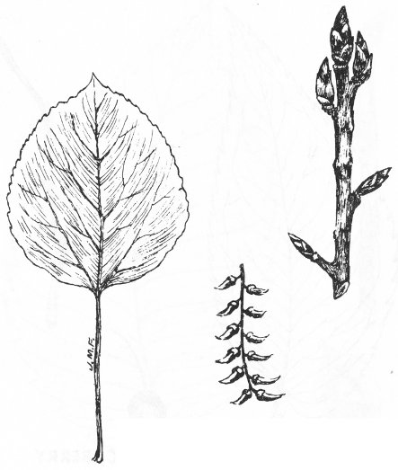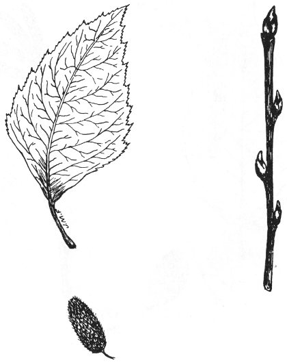 Twigs: Slender, rough, yellowish brown to grayish brown. Buds egg-shaped, ¹/₁₆″ long, reddish brown.
