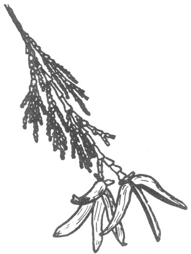 The pale yellow-green, moss-like material on the tree trunks is called staghorn lichen. It is not a moss, but is a union of two plants growing together; a fungus, giving it form and body, and an alga, growing inside and manufacturing food for both from the air and sunshine. Lichens do not in any way harm the trees, and grow as well on dead material.