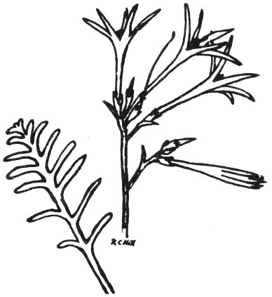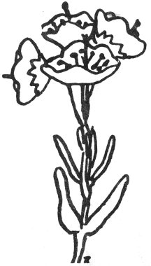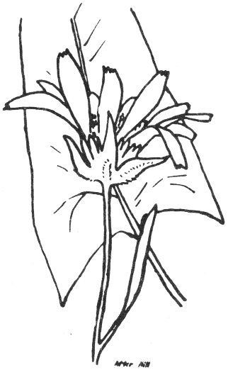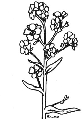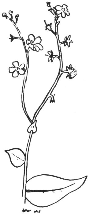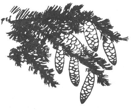 The common shrub-like trees along the first part of the trail are the mountain alder and willow. (see sketch). In the fall the willow leaves turn bright yellow. Both species lose their leaves in winter.