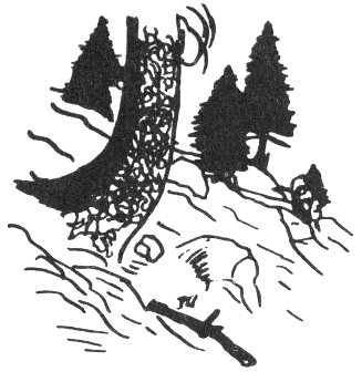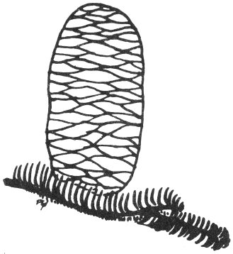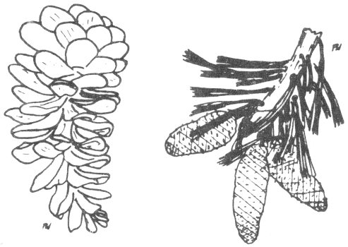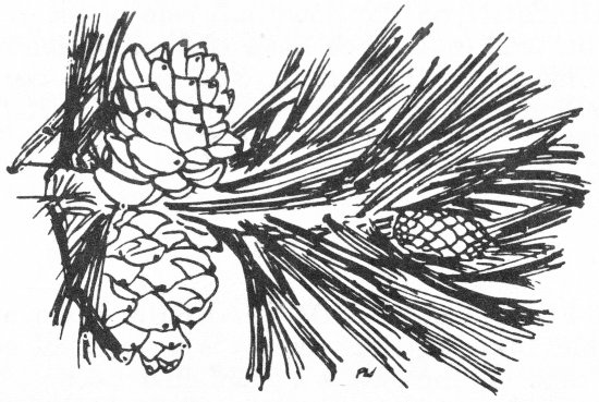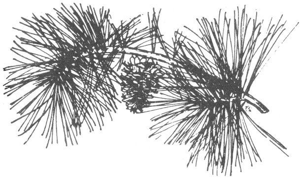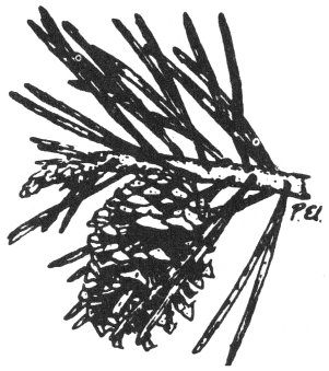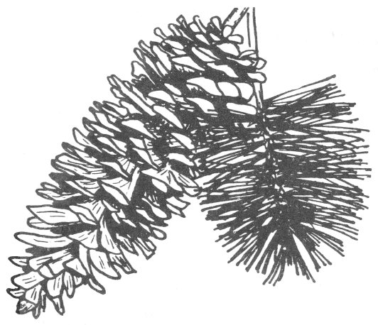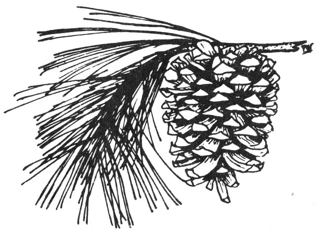 6 ELEVATION 7,000 FEET. Just ahead is a magnificent specimen of western white pine. Being one of the white pine group, it has five needles in a bundle. Its cone is about ⅓ the size of its near relative of lower (Transition Life Zone) elevations, the sugar pine. Its limbs grow far down on the trunk because they get plenty of light for the manufacture of food. Shading in dense forests causes a sloughing off of lower limbs, resulting in natural pruning.