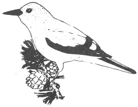This point is just over 8,000 feet elevation, in the Hudsonian Life Zone. Here the mountain hemlock trees, with their graceful nodding tops, and the noisy grey, black, and white jay known as the Clark’s nutcracker, are most conspicuous and typical forms of life.