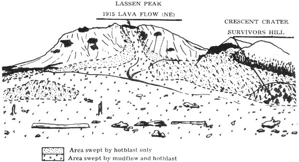 eruptions in 1915 flattened trees on the northeast slope of Lassen Peak.