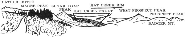 The HAT CREEK FAULT SCARP, outside the park, is a great crack in the earth where an enormous block to the east, known as the Hat Creek Rim, rose. The scarp, or bluff, runs about 25 miles north. This is the beginning of the so-called basin range structure of Nevada which is largely composed of such variously tilted fault blocks.