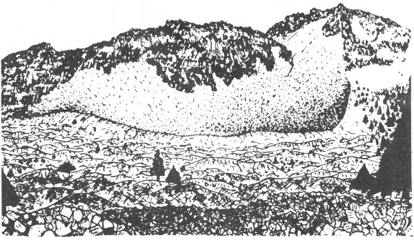 62 The sudden change in topography indicates the east edge of CHAOS JUMBLES ... the huge landslide from nearby Chaos Crags.