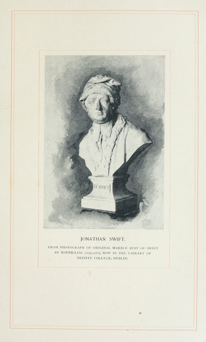 From photograph of original Marble Bust of Swift by Roubilliac (1695-1762), now in the Library of Trinity College, Dublin.