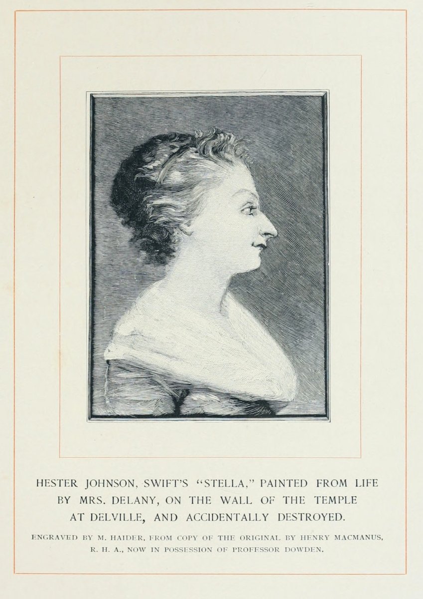 Hester Johnson, Swift’s “Stella,” painted from Life by Mrs. Delany, on the Wall of the Temple at Delville, and accidentally destroyed100