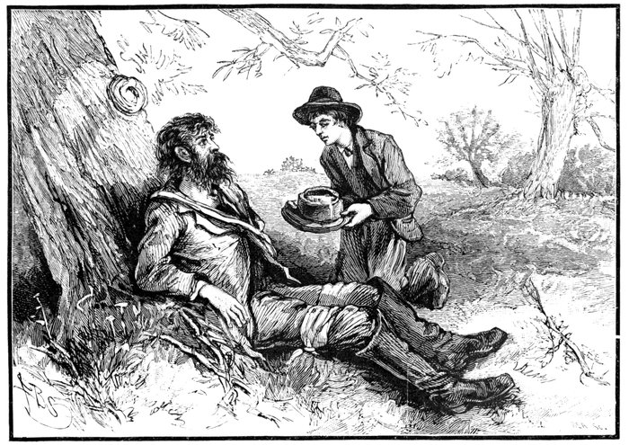 “Hank is a good fellow, that’s a fact,” said he to himself, “and I might have known that he wouldn’t say a word that he thought would offend me. But here’s one thing I can’t understand,” continued George, growing angry again. “If the settlers don’t want anything to do with Uncle John and Ned, is that any reason why they should give me the cold 15shoulder? If they don’t want to come to our rancho, they might at least treat me civilly when they meet me away from home. This is the strangest world I ever saw or heard of. If I should walk into Foxboro’, where Uncle John came from, with these clothes on, folks would look at me suspiciously, lock their back doors and keep an eye on their smoke-houses. He and Ned came into the country, dressed as I suppose all city folks dress, and every body is down on them, and ready to take them for anything in the world but an honest man and boy.”