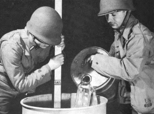 b. Use of water in training. Water may be used (instead of fuel) for elementary practice firing. Ignition cylinders are * * * piece, and lubricated (Par. 49). Use of water, however, should always be supplemented by firing ignited fuel because water does not give a correct impression of stream and flame characteristics.