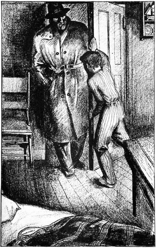 “Yer glad we’re goin’ straight?” the man asked with a sudden move of his arm on the boy’s shoulder.