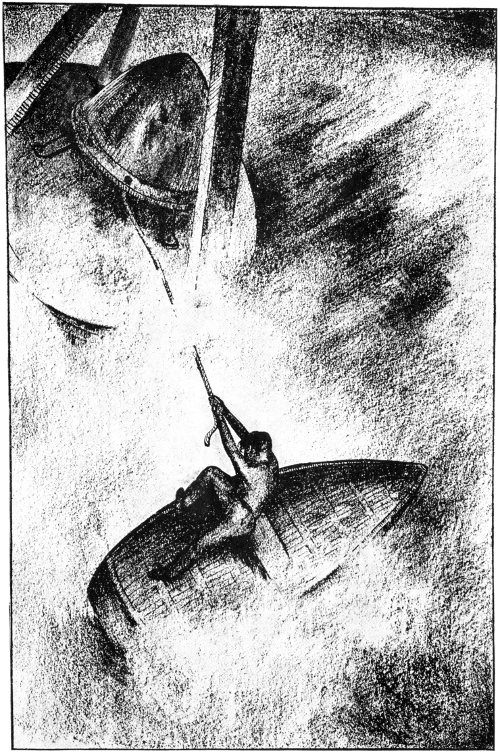 The boy nodded obediently and with an end of rope fastened the old tiller to a rusty ring. Then, hurrying forward, he jumped into the water and grasping the taut tow line, pulled himself hand over hand and scrambled over the stern of the launch.