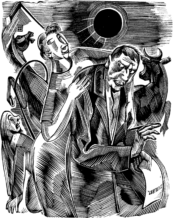 Etwas später reichte man ihm aber einen Brief, der mit der Post gekommen war. Kuzyn öffnete den Umschlag und fand darin eine Karikatur. Sie stellte Rachat-Chelam dar und das Stadthaupt, das vor ihm auf den Knien lag und, die Hände zu ihm emporstreckend, sagte: