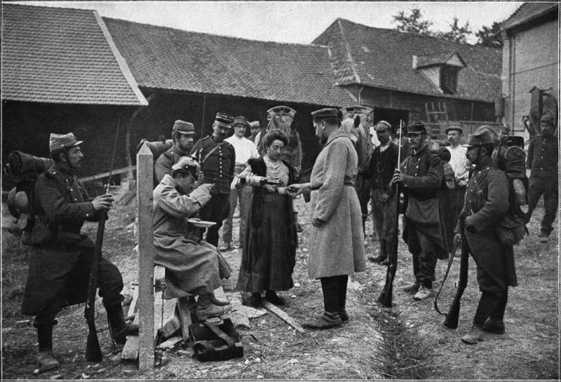 Ce petit comité, auquel s’était joint M. Arfeuille, pharmacien, eut le noble rôle de tenir tête aux exigences de l’envahisseur qui, durant plus d’un mois, défila dans la malheureuse ville sur laquelle ne cessaient de pleuvoir les plus fantastiques réquisitions, et, entre temps, les obus. Par son sang-froid, par son énergie hautaine, parfois ironique, Mme Macherez réussit à en imposer aux officiers allemands. Plus heureuse que son voisin, l’héroïque maire de Senlis, la vaillante femme épargna à ses concitoyens les horreurs du pillage et des fusillades; la ville de Soissons, qui, sans elle, eût sans doute été réduite en cendres, n’a souffert que des obus lancés par les Allemands au commencement de leur retraite.