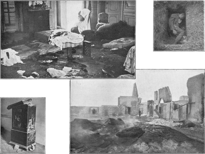 Brusquement la physionomie de la campagne s’est donc modifiée; le silence s’est fait un moment sur les plateaux du Soissonnais, leurs carrières transformées en retranchements et constituant une série de cavernes aménagées en batteries invisibles. Toutefois nous n’abandonnons pas la partie de ce côté. Français et Anglais, passés maîtres dans la recherche de ces terriers qui rappellent la chasse au renard avec le danger en plus, parviennent à découvrir ces gîtes, à les tourner, pour y pénétrer à la baïonnette, si nos obus n’y ont pas d’abord produit leurs terrifiants effets.