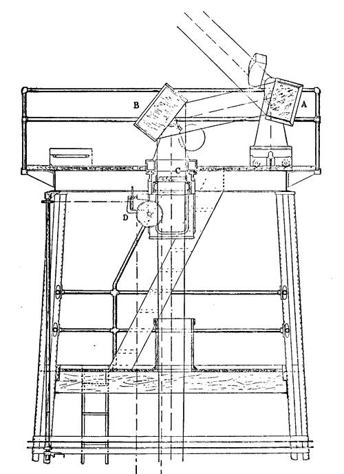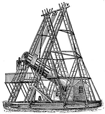 [8] This was probably due not only to unfavorable climate, but to the fact that Herschel, with all his ingenuity, does not appear to have mastered the casting difficulty, and was constrained to make his big speculum of Cu 75 per cent, Sn 25 per cent, a composition working rather easily and taking beautiful, but far from permanent, polish. He never seems to have used practically the SnCu4 formula, devised empirically by Mudge (Phil. Trans. 67, 298), and in quite general use thereafter up to the present time.