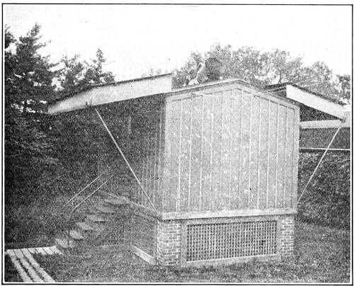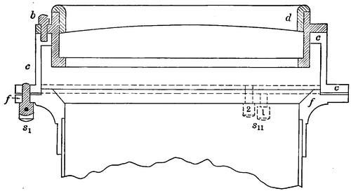 Now a glance at the curves shows that the bad zone of the Potsdam glass was originally near the periphery, (I), hence both involved large area and, from Conrady’s equation, seriously enlarged df due to the large relative aperture at the zone. An aberrant zone near the axis as in the stage (III) of the Potsdam objective or in the Ottawa 15 inch objective is much less harmful for corresponding reasons. Such differences have a direct bearing on the use of stops, since these may do good in case of peripheral aberration and harm when the faults are axial. Unless the aberrations are known no general conclusions can be drawn as to the effect of stops. Even in the Lowell telescope shown as a whole in Fig. 188, the late Dr. Lowell found stops to be useful in keeping down atmospheric troubles and reducing the illumination although they could have had no effect in relation to figure. Fig. 188 shows at the head of the tube a fitting for a big iris diaphragm, controlled from the eye-end, the value of which was well demonstrated by numerous observers.