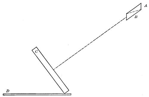 [23] The effect on the observed height of a prominence is h = h′ sin c/sin t, where h is the real height, h′ the apparent height, c the angle made by the grating face with the collimator, and t that with the telescope (Fig. 146).
