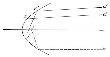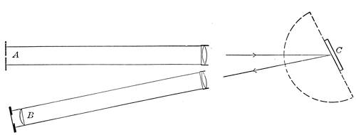 [30] Sometimes with ever so careful centering the ring system in the middle of the field is still eccentric with respect to the small mirror, showing that the axis of the parabola is not perpendicular to the general face of the mirror. This can usually be remedied by the adjusting screws of the main mirror as described, but now and then it is necessary actually to move over the small mirror into the real optical axis. Draper (loc. cit.) gives some experiences of this sort.