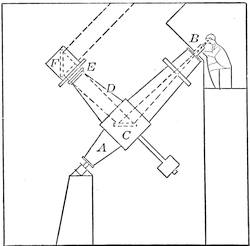 [17] A more precise method, depending on an actual measurement of the angle subtended by the diameter of the eyepiece diaphragm as seen through the eye end of the ocular and its comparison with the same angular diameter reckoned from the objective, is given by Schaeberle. M. N. 43, 297.