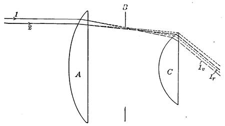 Further, with a given value of dp and the relation established by the chromatic aberration, i.e., about f/2000, a relation is also determined between f and A, required to bring the aberration within limits. The equation thus found is