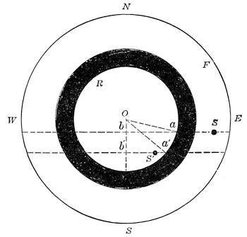 [20] r the radius of the ring, is given by, r = (15/2)(t′-t) cos Dec., t′-t being the seconds taken for transit.
