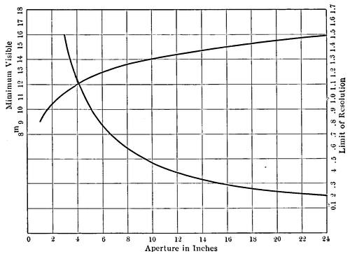 But the data showed unequivocally just what has been already indicated, that large apertures, suffering severely as they generally do from turbulence of the air, will not ordinarily stand their due proportion of magnification. With the refractors of 24 inches aperture and upwards the records show that even in this double star work, where, if anywhere, high power counts, the general practice ran in the vicinity of 30 per inch of aperture.